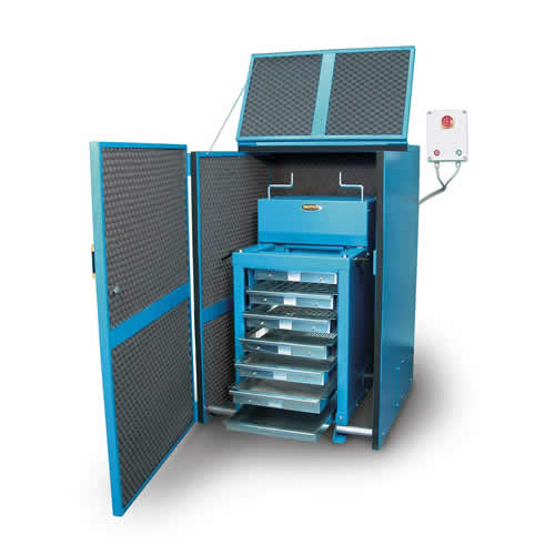 Designed for sieving considerable quantities of any material. The screen shaker accepts up to 30 litres (from 60 to 70 kg) of sample. Sturdy made, the machine can hold six screen trays and dust pan. Supplied complete with dust pan and screen trays.