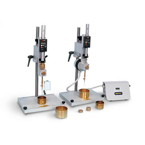 The penetrometer is supplied with stop and release push button, automatic zero set, micrometer adjustment, set of weights 50 and 100 g penetration needle, brass sample cups Ø 55x35 mm and 70x45 mm.