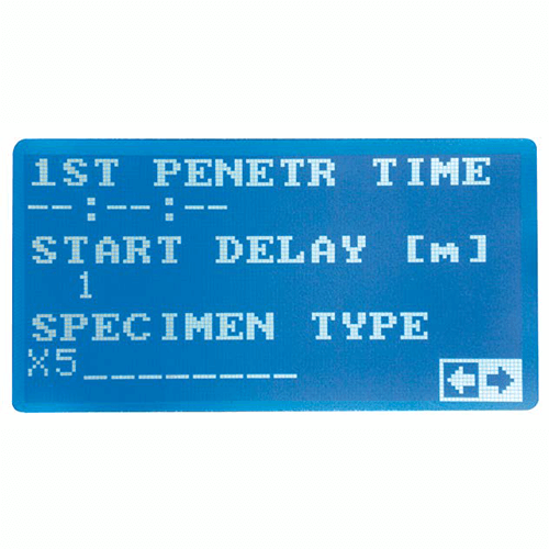 At the end of the test the appliance will print automatically by the incorporated printer a report with all data concerning the last test made including a graph tracing each single penetration with its values of time and penetration number.