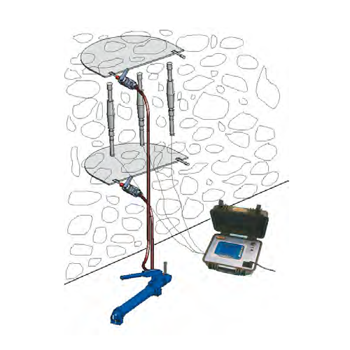 The variation of distances of the datum points at different pressure steps allows to delineate a strength-deformation curve, obtaining elastic modulus, Poisson and breaking point values.
