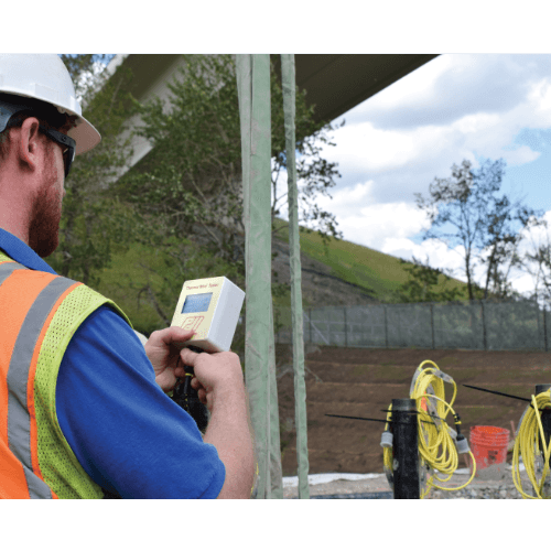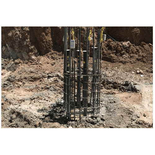The TIP Thermal Wire Cable Systemi includes cables fitted with digital thermal sensors spaced at every 305 mm and Thermal Acquisition Ports (TAP). The Thermal Wire cables are attached to the reinforcing cage prior to concreting. In general one cable is installed per each 305 mm (one foot) of diameter. A TAP is connected to each Thermal Wire cable, and automatically samples data from that cable at user selected time intervals,typically every 15 minutes. Temperatures obtained throughout the concrete curing process are saved in each TAP, and may be viewed at any time after data collection begins. The temperature versus time history prior to the peak temperature is inspected to confirm uniform quality or spot potential anomalies. A single Thermal Wire cable may be attached to a center rebar for small diameter augered cast-in-place or continuous flight auger piles.