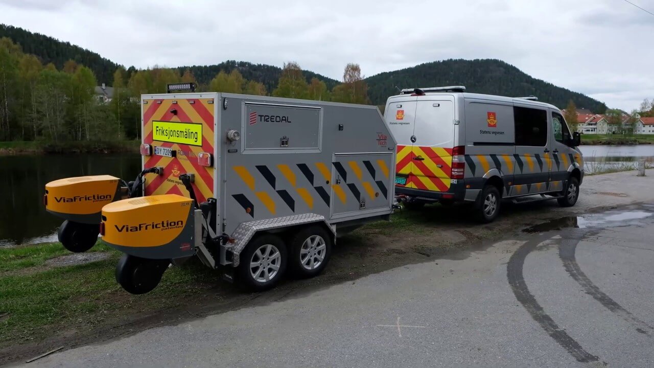 ViaFriction is a one-wheeled friction measuring device pulled by a vehicle. It is designated a CFME (Continuous Friction Measuring Equipment). Its main task is to measure the friction of the pavement surface, in both winter and summer conditions. The friction between the measuring wheel and the surface is continuously measured, while a unique measuring technology, developed and patented by ViaTech, ensures that the data is stable and reliable, even under volatile conditions. This reduces the need for calibration significantly.