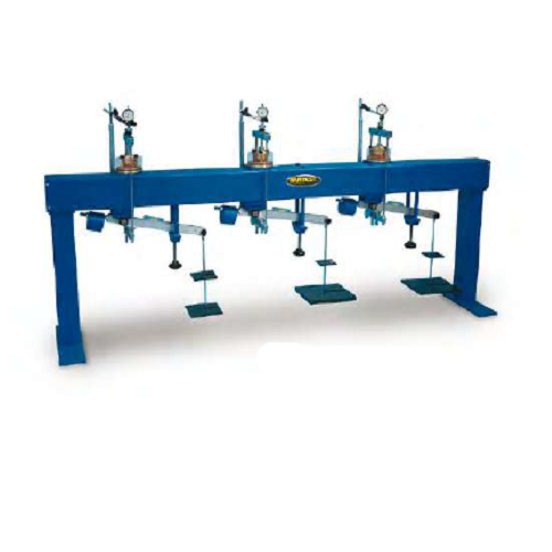 also be used to consolidate oedometric cells. Produced in a rugged steel structure, it is supplied complete with three lever arms ratio 10:1 having each max. load up to 550 kg, centering devices and